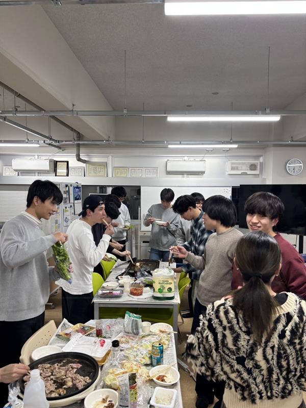 また、社基の卒論提出前夜には、M1、M2の先輩方が焼肉を用意してくれました!ワイワイ楽しく、おいしくいただき、ラストスパートをかけることができました!